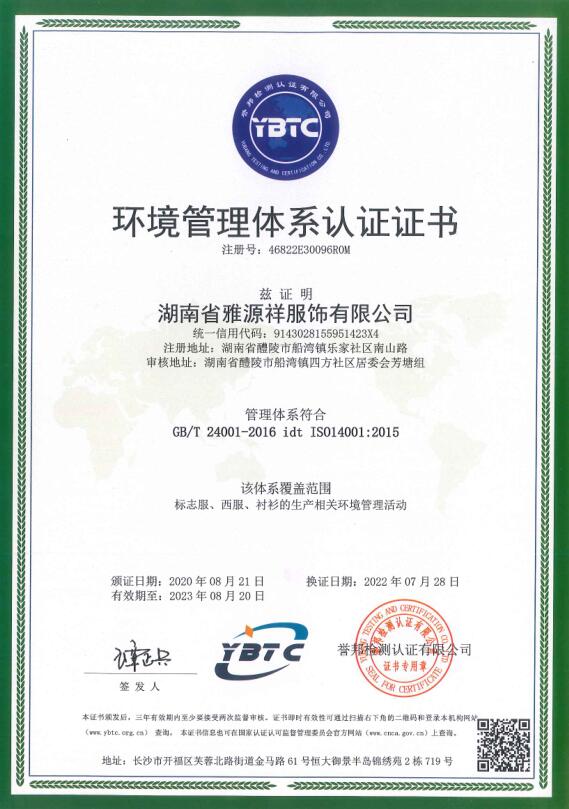 1、企業概況 湖南省雅源祥服飾有限公司地處湘贛邊境素有瓷城之稱的醴陵郊區,企業創(chuàng)建于1995年,是行政執(zhí)法制服、被裝的生產企業。2、組織機構 跟隨改革開放的步伐,我公司不斷發(fā)展壯大,公司董事會下設總經理辦公室、生產部、技術部、質檢部、財務部、采購部、業務部等部門,下設有流水線西服生產車間、標志服生產車間、襯衣生產車間、... [更多]